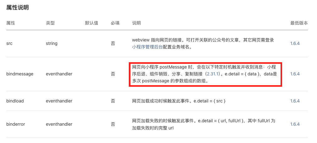 也就是当我们确定跳转的链接是 wxapp 协议的,则通过 wx.miniProgram.postMessage 通信方法来触发宿主小程序的跳转事件。查阅官方文档,发现小程序不会立即收到消息,只会在特定时机收到消息。